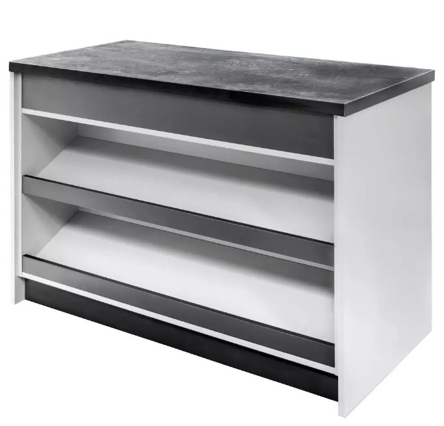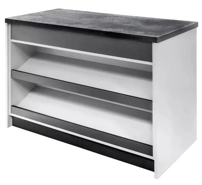 - 2 półki ustawione pod kątem ułatwiają eksponowanie produktów oraz zapewniają łatwy dostęp do nich