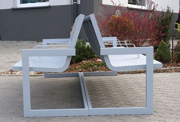 Ławka dworcowa Azalia, obustronna, funkcjonalna i wygodna, idealna w poczekalniach przy dworcach kolejowych i autobusowych.