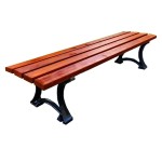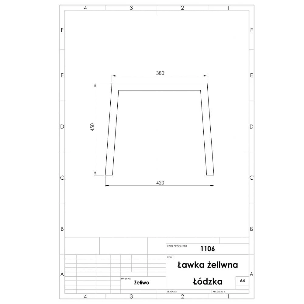 Ławka Łódzka bez oparcia o oryginalnym i ciekawym wyglądzie. Podstawa to żeliwne odlewy natomiast siedzisko to listwy drewna świerkowego.