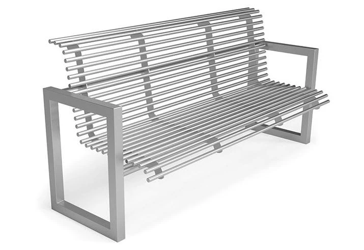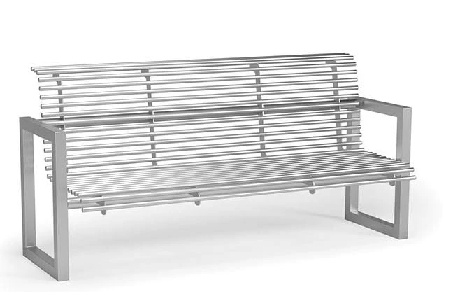 Ławka Szafir II z oparciem, funkcjonalna i niezwykle wygodna, w całości wykonana ze stali z podłokietnikami.
