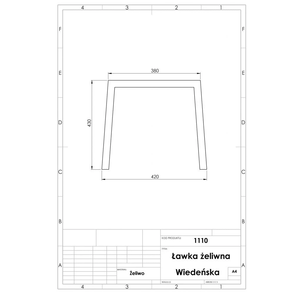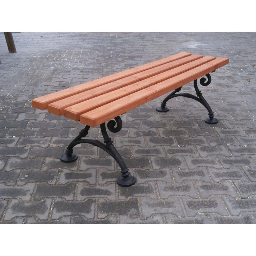 Ławka Wiedeńska bez oparcia - ławka parkowa, której konstrukcja wykonana jest z żeliwnych odlewów natomiast siedzisko z listew drewna świerkowego.