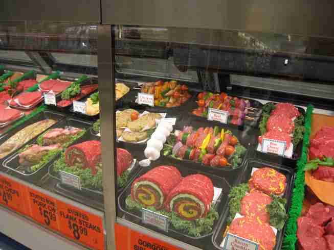 - przy mięsie i wędlinach - specjalna lampa „mięsna” (czerwona),