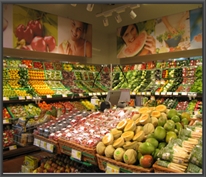 Owoce i warzywa – zwykle są naprzeciw wejścia do sklepu i klient widzi je jako pierwsze, dlatego trzeba pamiętać, że tylko raz możemy zrobić „dobre pierwsze wrażenie”