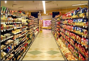 Sala sprzedaży – regały z produktami ogólnospożywczymi - Linie świetlne – wzdłuż regałów: