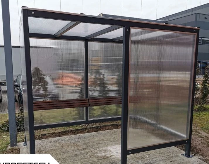 Palarnia Noelia II wykonana z poliwęglanu komorowego 8 mm z podpórką dla przebywających w palarni.
