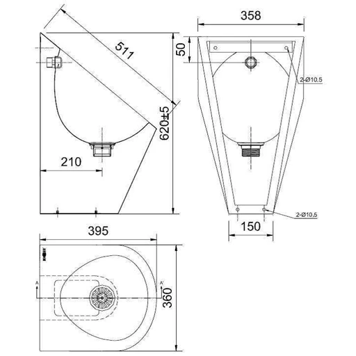 - wymiary pisuaru: wysokość 605 mm, szerokość 360 mm, głębokość 395 mm