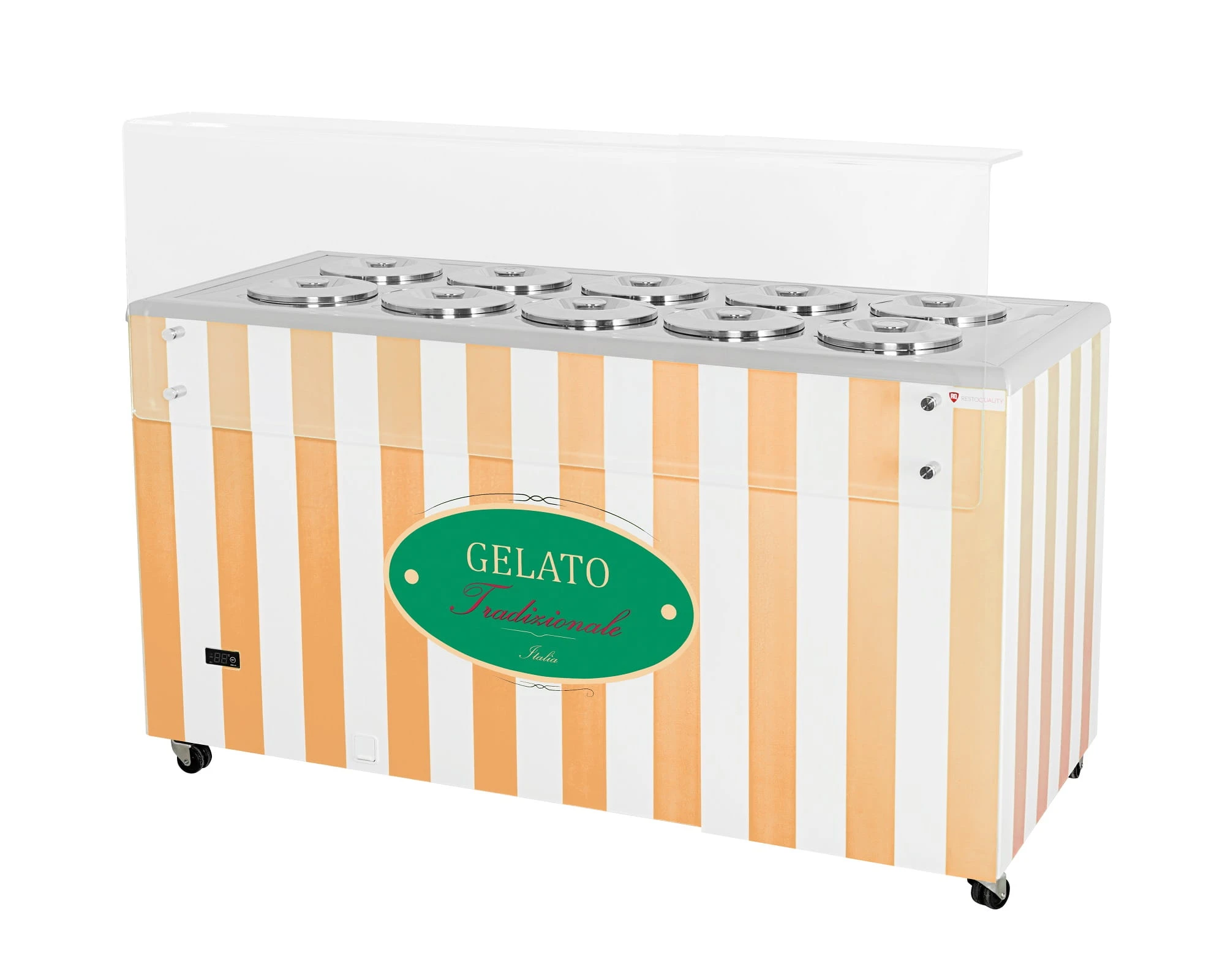 Dystrybutor do lodów, witryna do lodów, konserwator, retro, 10 tub, okrągłe kuwety, 1503x670x895 mm, GELATO POZETTI 10 BEIGE