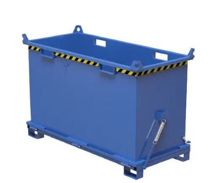 Kontenery PMDB to solidne pojemniki stalowe z otwieranym dnem, zaprojektowane do obsługi przez wózki widłowe, suwnice, dźwigi oraz ręczne wózki paletowe.
