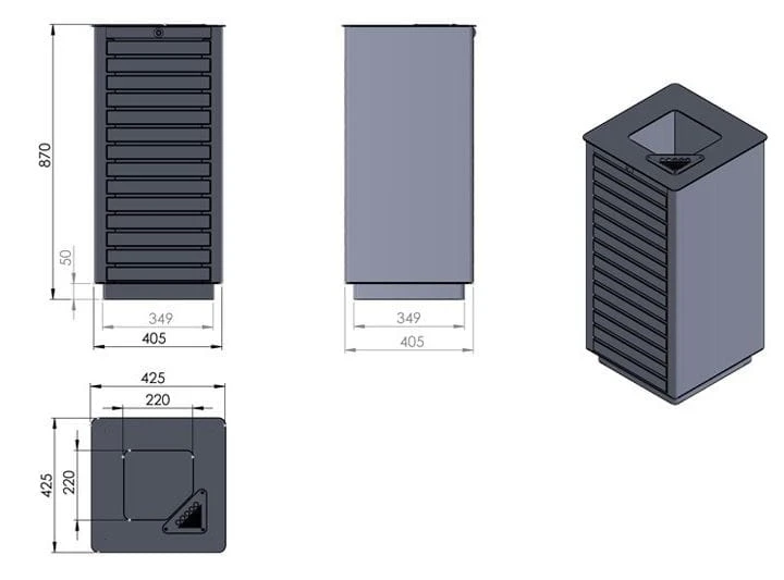Kosz Amant VIII 80l z popielnicą stal ocynkowana i malowana