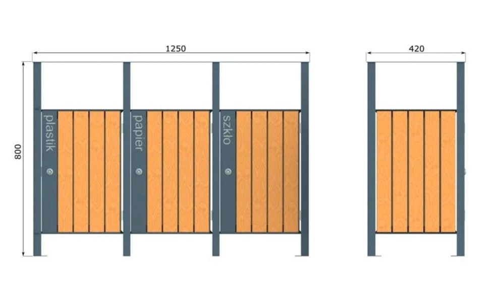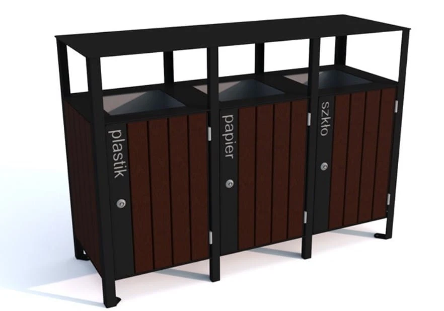 Uniwersalność zastosowania: Idealnie nadaje się do różnych przestrzeni – od przestrzeni publicznych po komercyjne tereny. Można go umieścić wszędzie, gdzie jest potrzeba wygodnej segregacji odpadów.