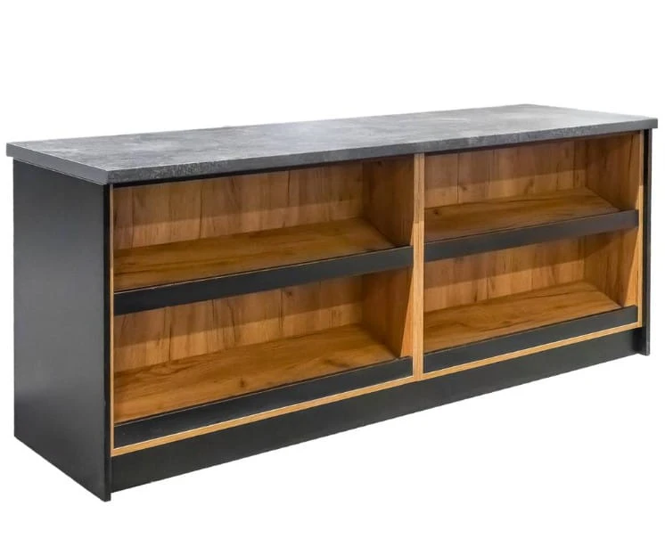Lada sklepowa sprzedażowa impulsowa Mega-M H- 90 cm L- 200 cm G- 60 cm czarny/dąb kraft/blat K205