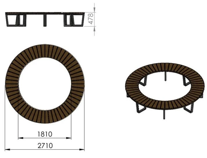 - średnica zewnętrzna ławki: 271 cm