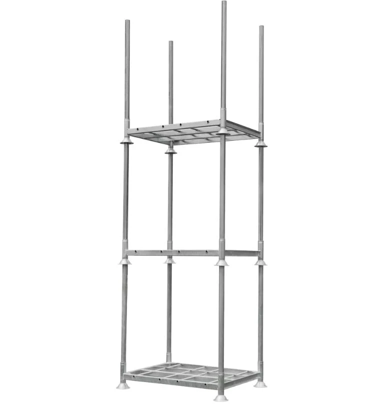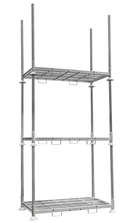 Paleta słupkowa Manurack (mobilrack, regał magazynowy, paleta szkółkarska) Mega-M to nowoczesne rozwiązanie dedykowane do przechowywania towarów o nietypowych rozmiarach. Dzięki podwójnemu zastosowaniu, może służyć jako paleta transportowa, a po dodaniu rurek wspornikowych zmienia się w regał magazynowy. To wyjątkowo wszechstronne rozwiązanie, które pozwala na szybkie zwiększenie przestrzeni magazynowej. Po sezonie, paletę można z łatwością zdemontować, co pozwala na oszczędność miejsca.