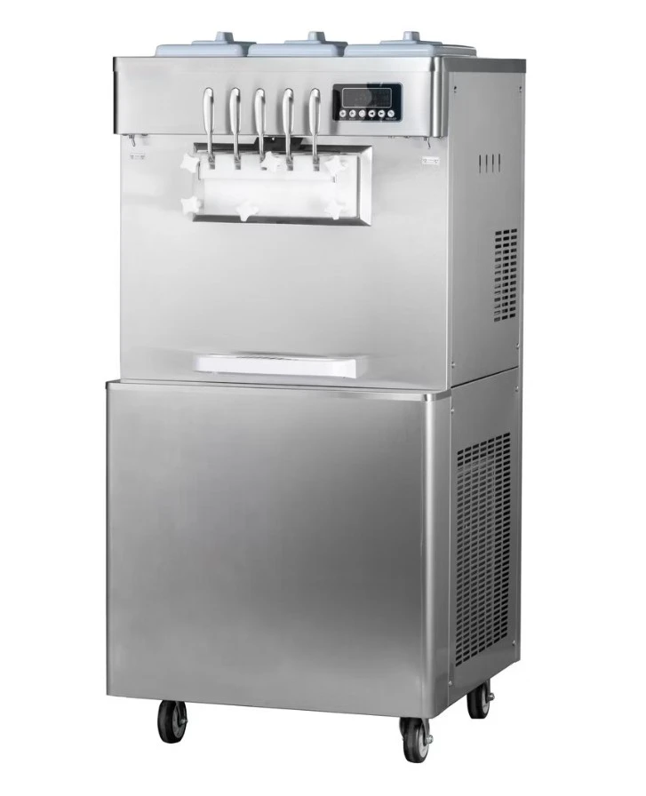 Automat do lodów RQMB33: 3 smaki + 2 mixy, pompa napowietrzająca i nocne chłodzenie. Zbiorniki 3x7 l. Sprawdź ofertę B2B i doradztwo na eformula.pl.