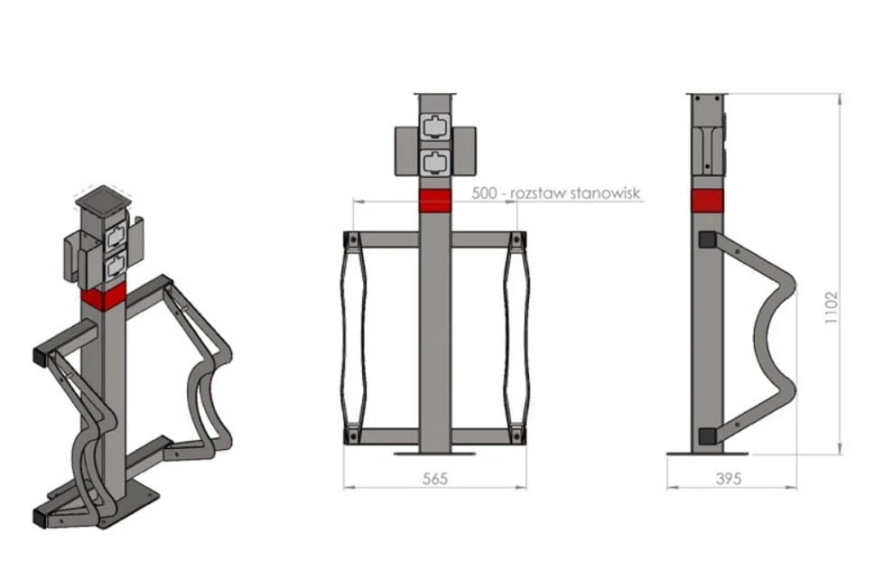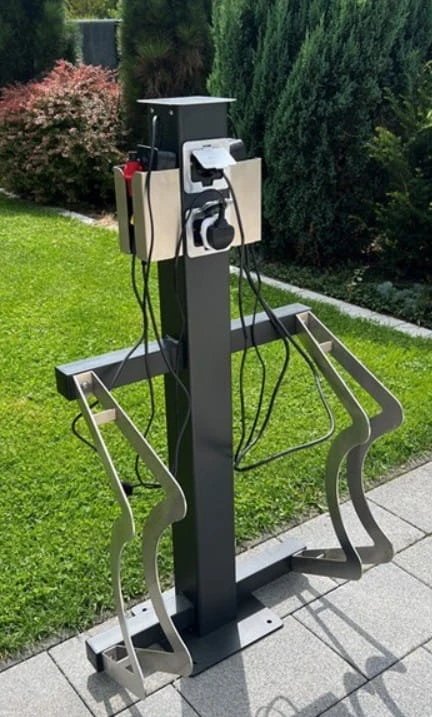 Stojak na 2 rowery "Orion II" ze stacją ładowania rowerów elektrycznych stal ocynkowana i malowana