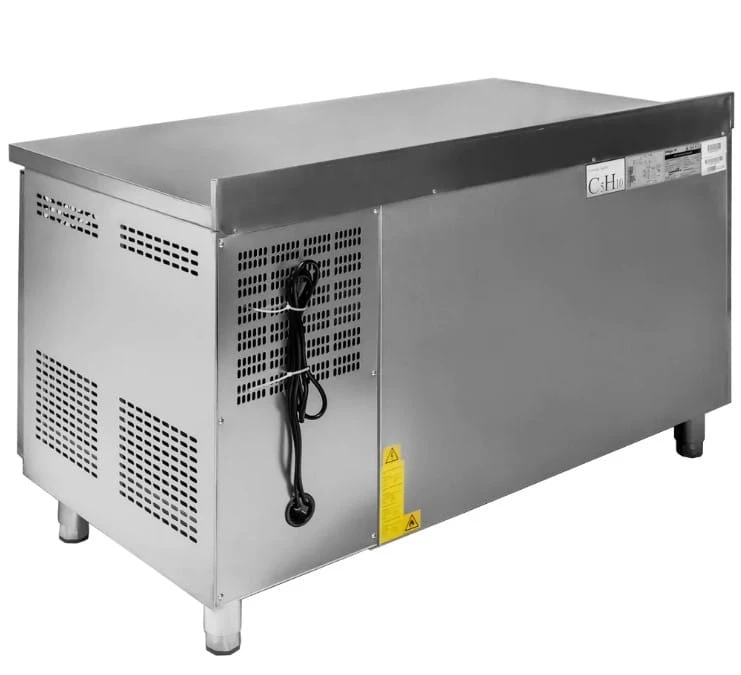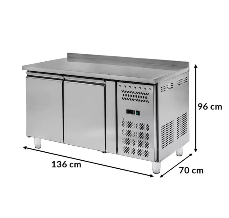 Stół mroźniczy Mega-M został wyposażony w praktyczny, nierdzewny blat roboczy, ułatwiający przygotowanie potraw bezpośrednio nad komorą mroźniczą. Dodatkowo, wysoki ogranicznik zabezpiecza ścianę przed zabrudzeniem, a drzwi samodomykające się zapewniają, że mroźnicze właściwości zostaną zachowane.