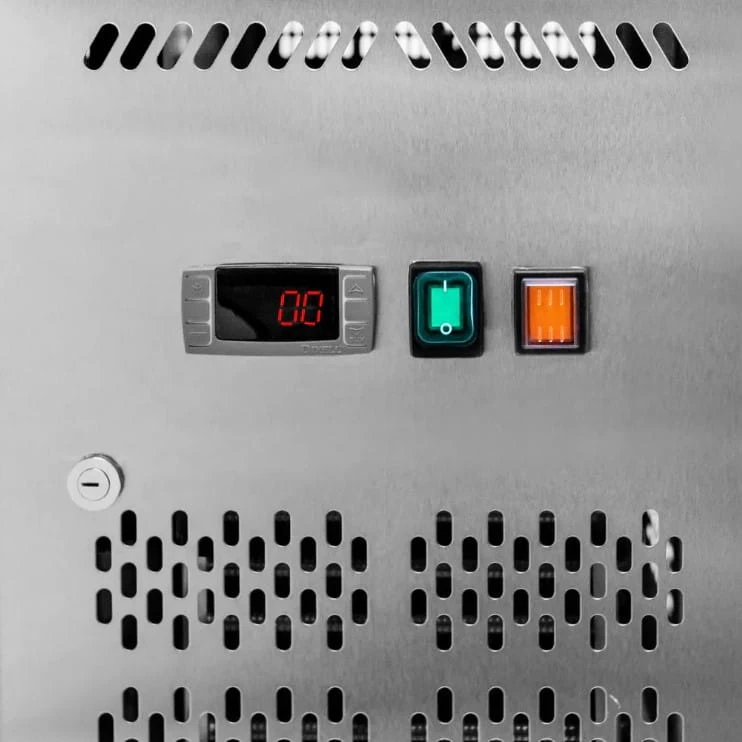 Dzięki elektronicznemu sterownikowi marki Dixell, możesz precyzyjnie kontrolować temperaturę wewnątrz komory mroźniczej w zakresie od -10°C do -20°C. System chłodzenia dynamiczny gwarantuje równomierną temperaturę w całej komorze, a funkcja No Frost eliminuje konieczność ręcznego odszraniania.
