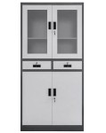Szafa biurowa metalowa na dokumenty Mega-M WENUS przeszklone drzwi 2 szuflady S-90 cm G-40 cm H-185 cm grafitowa szary front