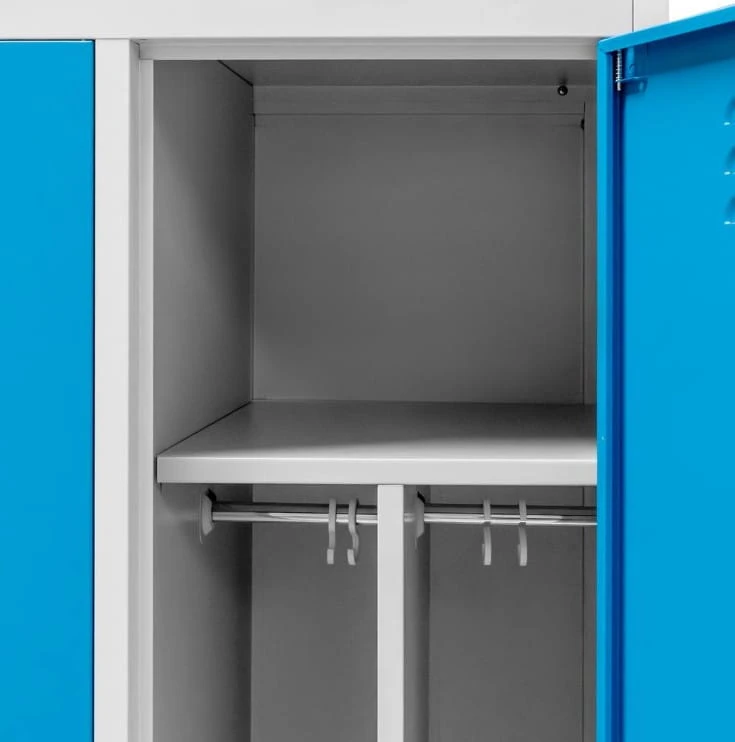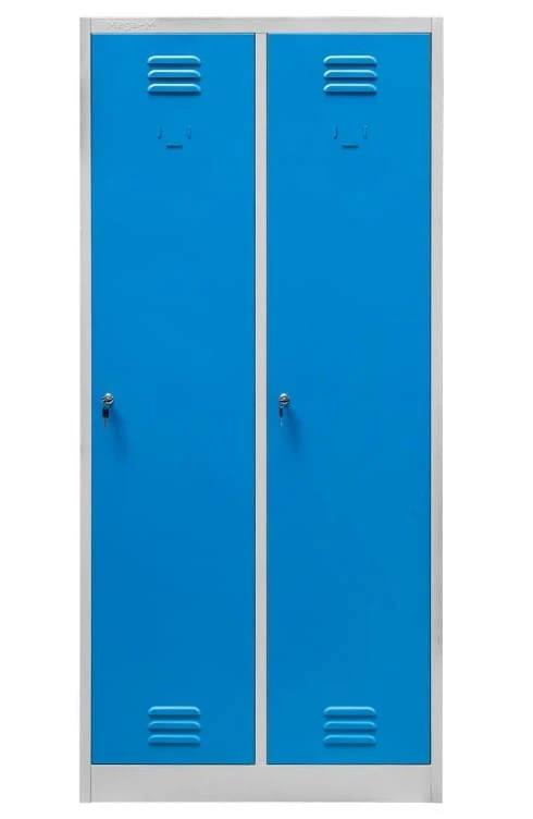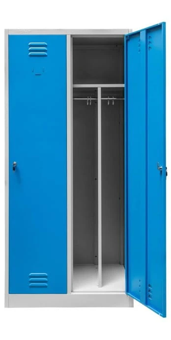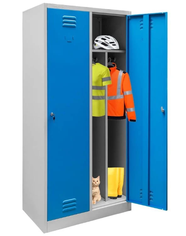 Szafka BHP ubraniowa Mega-M pracownicza 2-drzwiowa z przegrodami S-80 cm szara/niebieski front