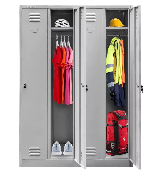 Potrzebujesz solidnej i praktycznej szafki do przechowywania odzieży i rzeczy osobistych? Szafka BHP Mega-M 4-drzwiowa to idealne rozwiązanie dla szatni pracowniczych, szkolnych, siłowni, basenów i pomieszczeń socjalnych. Wykonana z wytrzymałej blachy stalowej, malowanej proszkowo na uniwersalny szary kolor, gwarantuje trwałość i odporność na uszkodzenia.