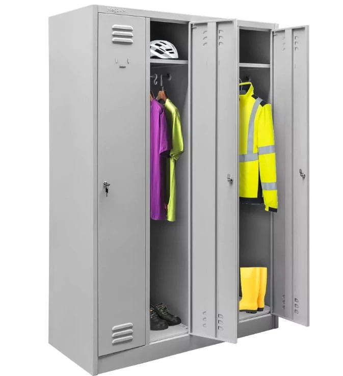 Szafka Mega-M wyposażona jest w cztery oddzielne komory, a każda z nich posiada niezależny zamek cylindryczny na klucz. Dzięki temu możesz mieć pewność, że Twoje rzeczy są bezpieczne i chronione.