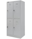 Szafka BHP z czterema drzwiami to idealny wybór do przechowywania odzieży roboczej oraz prywatnych rzeczy pracowników. Dzięki czterem oddzielnym komorom zapewnia wystarczającą przestrzeń dla ubrań nawet czterech osób. Tego rodzaju szafkę można spotkać w szatniach zakładów pracy, na siłowniach, basenach czy innych obiektach publicznych. Wykonana z trwałej stali malowanej proszkowo, cechuje się odpornością na uszkodzenia mechaniczne i korozję. Otwory wentylacyjne zapobiegają gromadzeniu się wilgoci. Szafka jest dostarczana do samodzielnego montażu.
