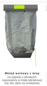 - worków gumowanych z misą na odcieki - wkład workowy na odpady z odciekami wyposażony w misę odciekową ( np. bio, szkło czy zmieszane)