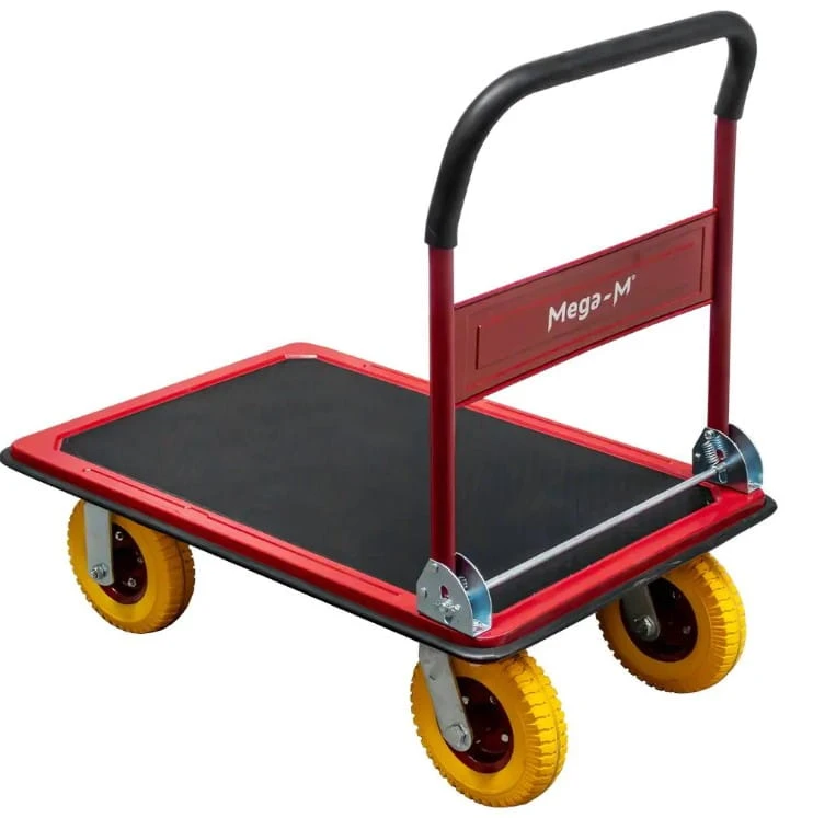 Wózek platformowy Mega-M to uniwersalne narzędzie, które sprawdzi się w magazynach, sklepach, hurtowniach, centrach dystrybucyjnych, firmach produkcyjnych, warsztatach, gospodarstwach domowych