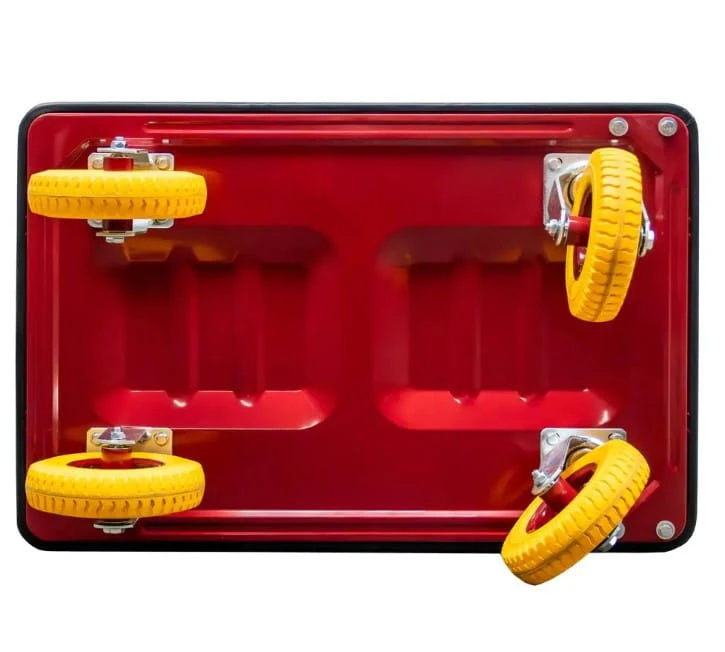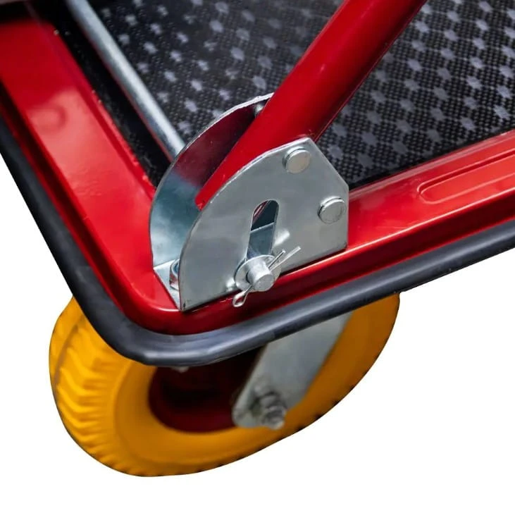 Malowanie proszkowe w intensywnym czerwonym kolorze nie tylko nadaje wózkowi atrakcyjny wygląd, ale również zapewnia odporność na korozję i uszkodzenia mechaniczne. To inwestycja na lata!
