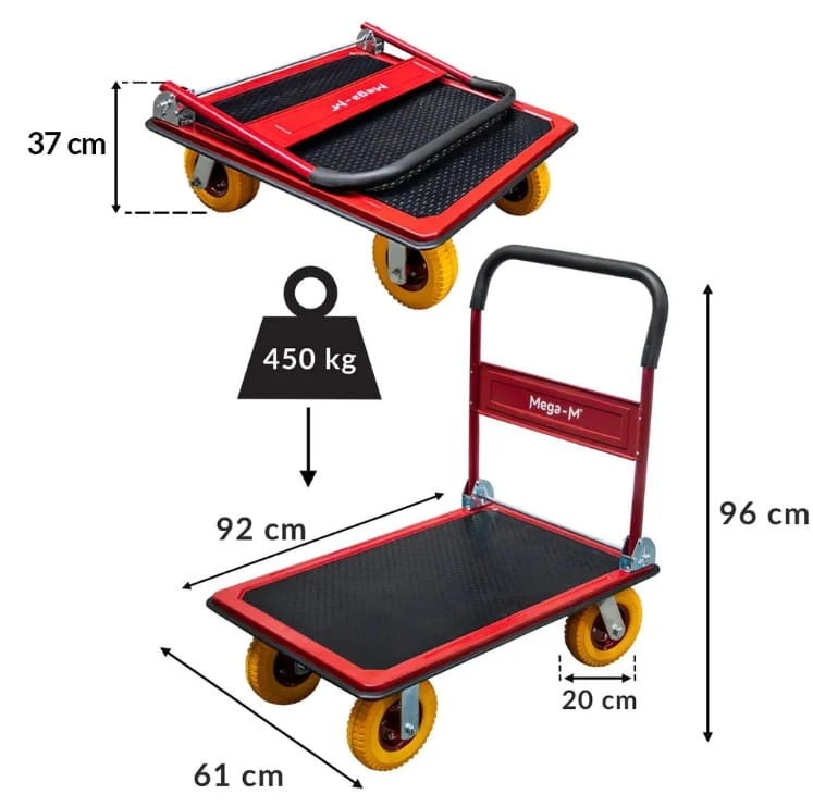 Wózek platformowy magazynowy Mega-M udźwig 450 kg koła poliuretanowe