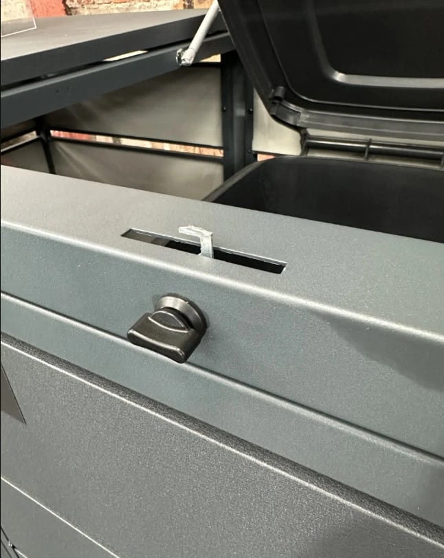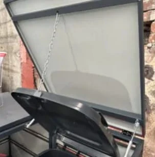 - do klapy przymocowany jest łańcuch unoszący jednocześnie pokrywę pojemnika na śmieci