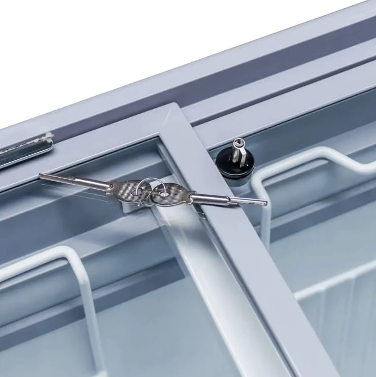 Zamrażarka jest wykonana z wysokiej jakości stali lakierowanej proszkowo oraz szkła hartowanego. To nie tylko zapewnia elegancki wygląd, ale także długotrwałą trwałość i oszczędność energii.