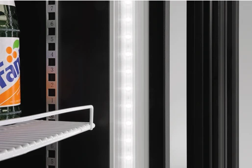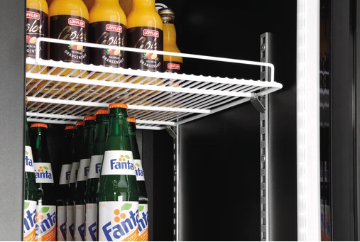 Czarna stylowa szafa chłodnicza swoje zastosowanie znajdzie w kawiarniach, barach, restauracjach, klubach sportowych oraz sklepach. Idealnie się sprawdzi do przechowywania napojów i potraf. Szafa jest chłodzona powietrzem obiegowym oraz posiada funkcję odparowywania wody kondensacyjnej.