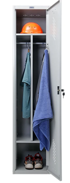 Pojedyncza, dwudzielna szafa socjalna LS 11-40D, metalowa, odzieżowa, BHP - posiada przegrodę oddzielającą odzież czystą od brudnej.