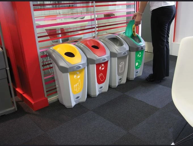 Pojemnik do segregacji metali i tworzyw sztucznych Nexus 30 idealnie współgra z każdym otoczeniem wspomagając efektywne gromadzenie i segregację odpadów.