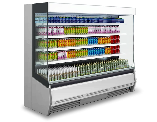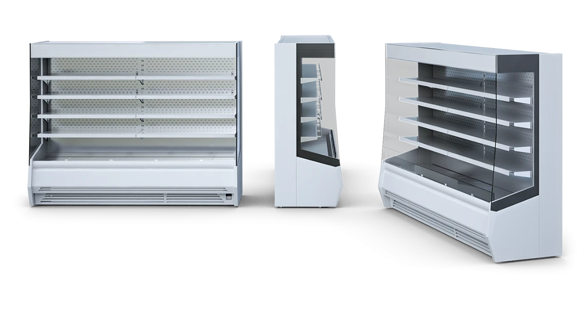 Regał chłodniczy TIMOR, wersja z agregatem wewnętrznym. Dostępne wersje na nabiał, owoce i warzywa oraz wędliny (z hakami).