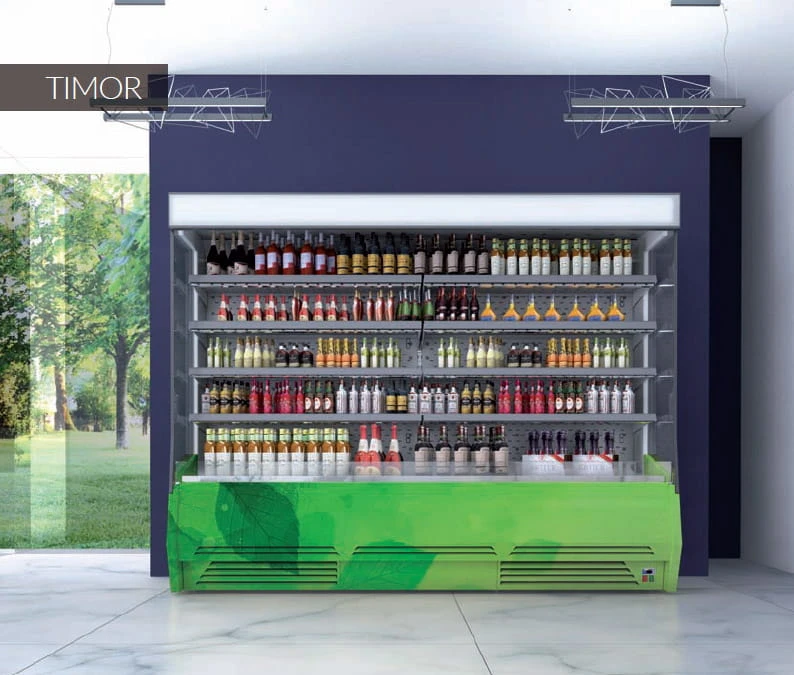 Głównym przeznaczeniem regału chłodniczego TIMOR jest ekspozycja i sprzedaż artykułów nabiałowych, owoców i warzyw, pakowanych produktów garmażeryjnych w sklepach spożywczych, marketach oraz hipermarketach. Zakres temperatur: od +1 do +10°C, co umożliwia przechowywanie produktów spożywczych w odpowiednich warunkach termicznych.