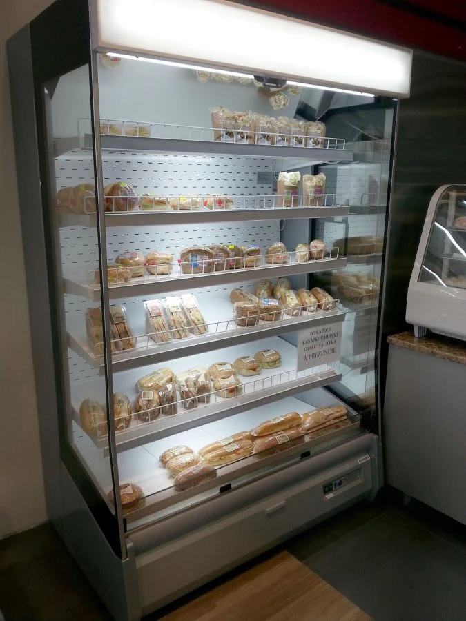- oświetlenie wewnętrzne górne– świetlówka LED (barwa do wyboru: biała, cukiernicza lub mięsna)
