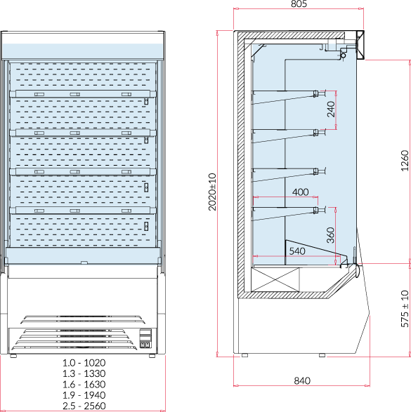 Szukasz innej długości tego regału chłodniczej? Do wyboru są różne długości urządzenia, dostępne pod poniższymi linkami: