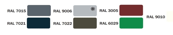 Kolory podstawowe RAL 7015, 906, 7021, 7022, 6029, 3005, 9010.