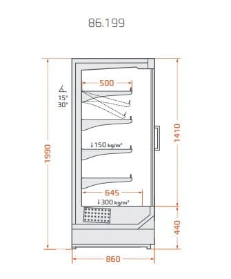 Parametry techniczne regału chłodniczego RCS Scorpion 86.199 1,0: