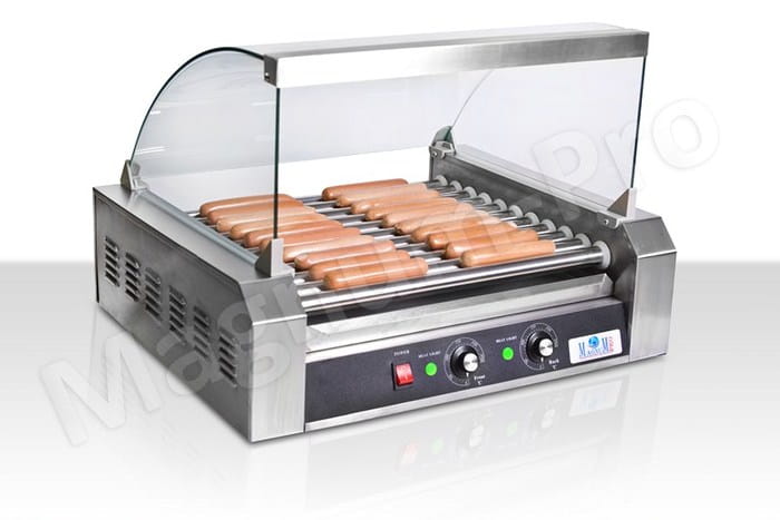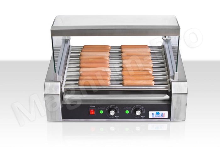 Rolkowy podgrzewacz do parówek - 11 rolek, szklana osłona