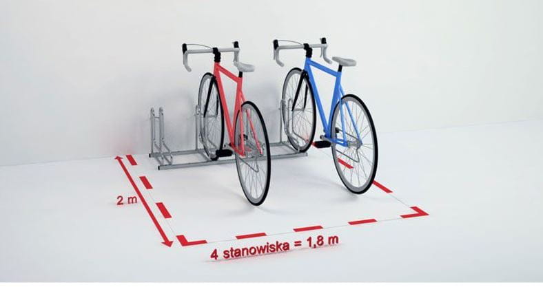 - optymalny rozstaw stanowisk (42 cm) pozwala na swobodne i bezpieczne zaparkowanie rowerów niezależnie od ich wielkości i rodzaju