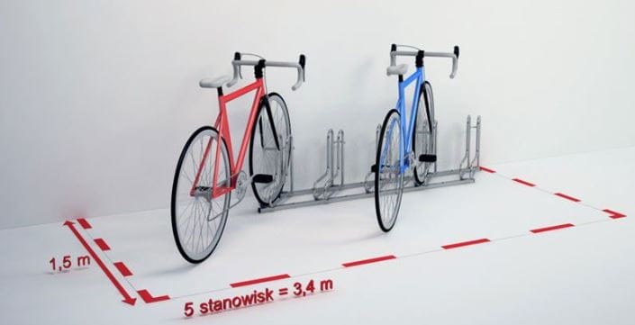 - optymalny rozstaw stanowisk (42 cm) pozwala na swobodne i bezpieczne zaparkowanie rowerów niezależnie od ich wielkości i rodzaju