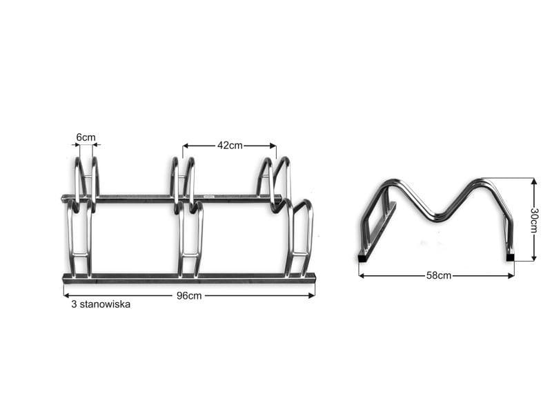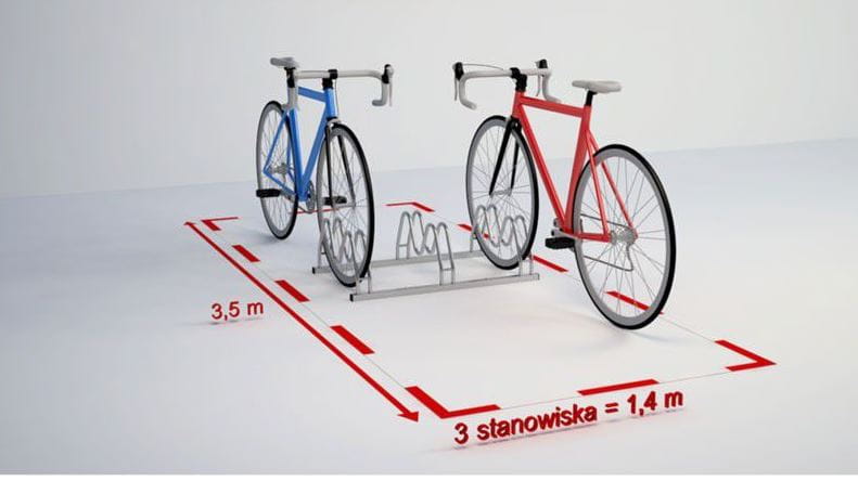 - optymalny rozstaw stanowisk (42 cm) pozwala na swobodne i bezpieczne zaparkowanie rowerów niezależnie od ich wielkości i rodzaju