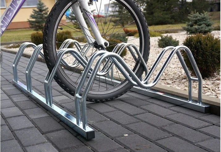 Stojak rowerowy SMILE-3 do obustronnego parkowania każdego typu i wielkości rowerów również tych wyposażonych w hamulce tarczowe.