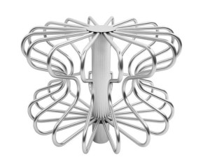 Stojak rowerowy kształtem przypominający płatki kwiatków. Zapewnia oparcie na 16 stanowisk rowerowych.