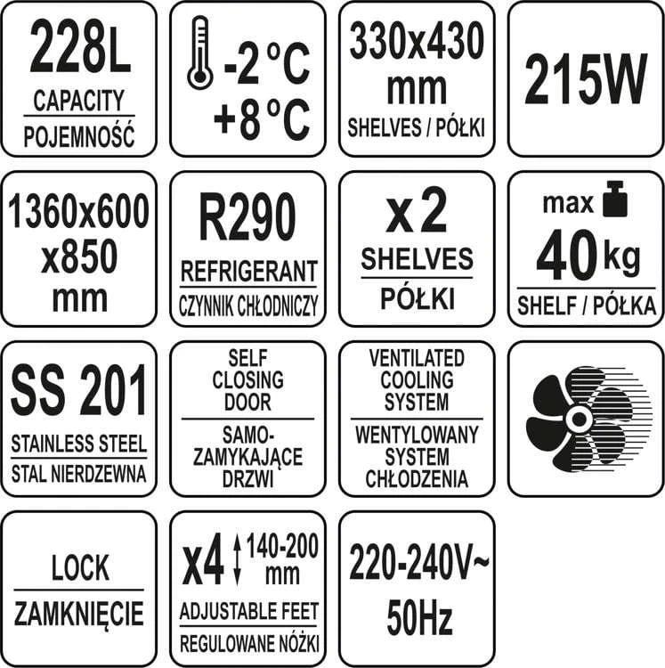 Stół chłodniczy YATO 2-drzwiowy z agregatem bocznym.