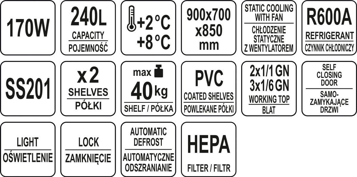 Przeznaczony jest do przechowywania żywności, idealnie nadaje się do wszelkiego typu punków gastronomicznych do przygotowywania sałatek.