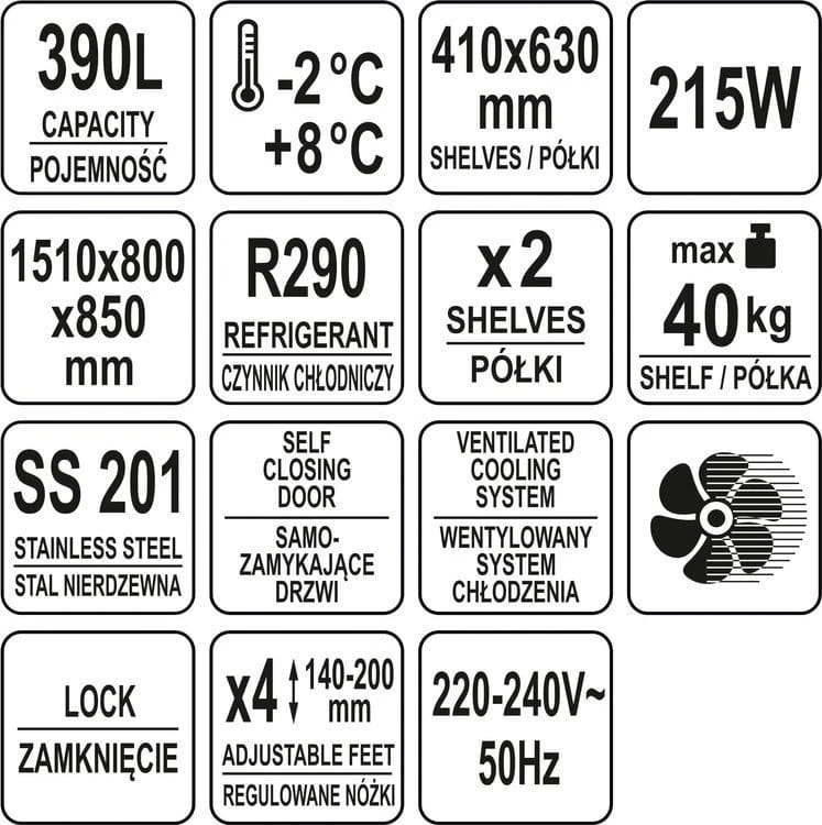 - pojemność: 390 l